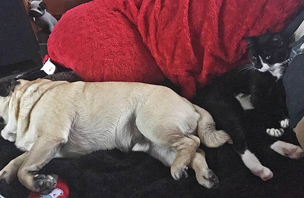 As you can see from the photos, Toby has settled in very nicely thank you with his own bed and he is on speaking terms with the cat. Unless she feels that he is pushing it and swipes him one to keep him in his place.